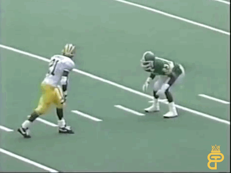 When Michigan reached the red zone in 1991, Desmond Howard put cornerbacks in an impossible bind. Cheat to the inside and he’d make a spectacular catch on a fade route. (See above.) Position on the outside to stop the fade, however, and he’d run a slant so quick it often defeated safety help. Put a hard double on him and the Wolverines could run into a light box with a running back trio that combined for 25 touchdowns; Tyrone Wheatley was the third-stringer.2