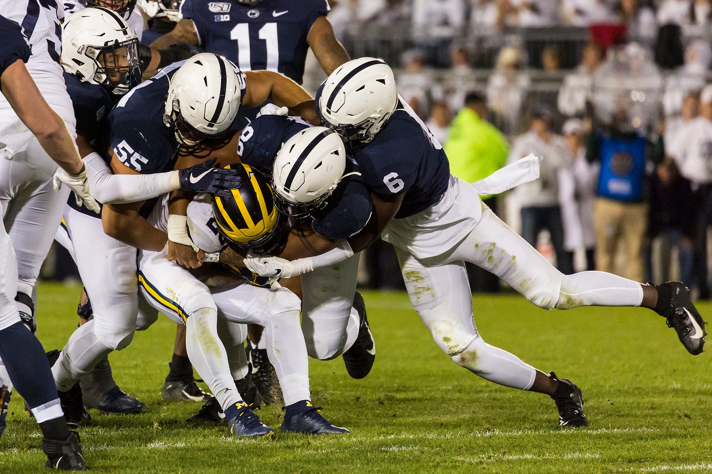 Player C, the one with easily the largest improvement over the rest of his team? Yes, that’s Haskins. The others, in order: Goodson, Berger, Illinois’ Chase Brown, and Indiana’s Stevie Scott. (Yes, the Hoosier O-line was rough last year.)